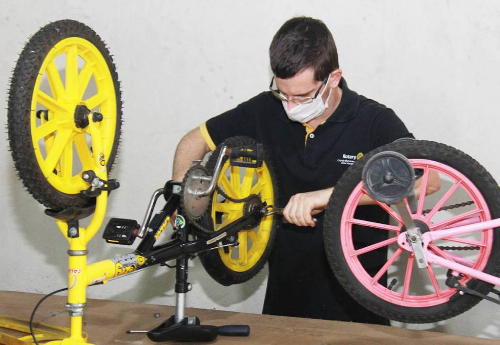 No último sábado, dia 21/11, Companheiros do Rotary Clube Blumenau Victor Konder realizaram mutirão para efetuar os reparos e limpeza das bicicletas doadas para a Ciclovia da Alegria.