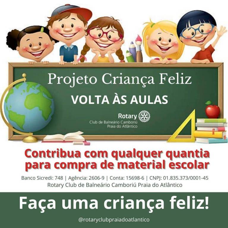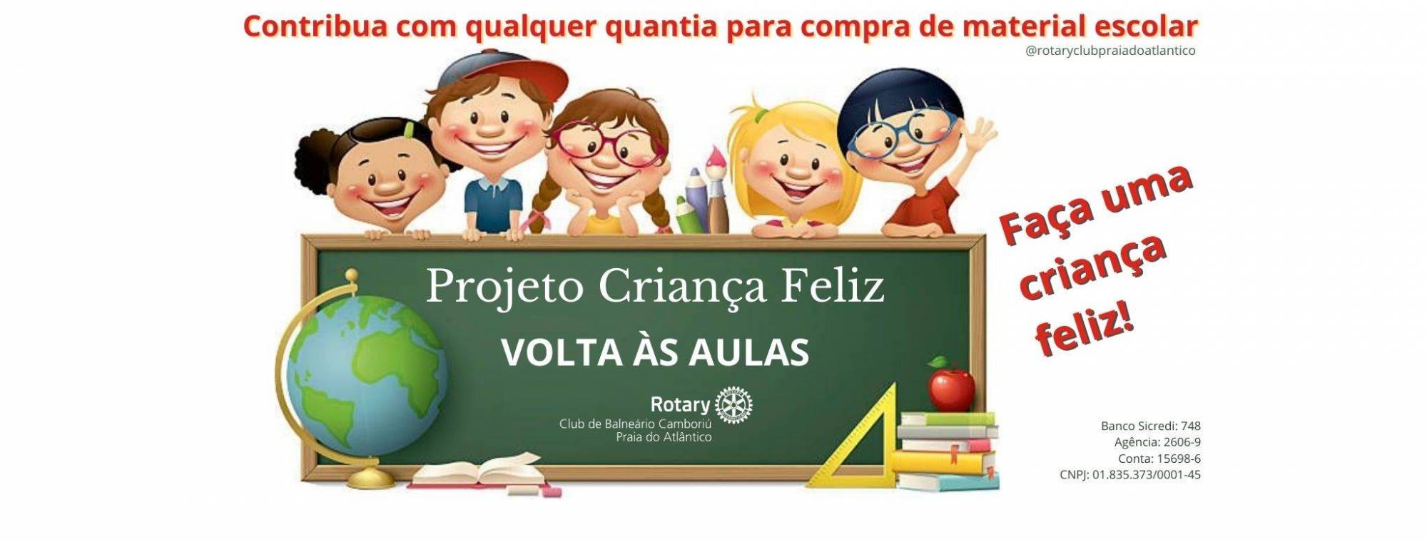 O Projeto Criança Feliz é uma iniciativa do @rotaryclubpraiadoatlantico a fim arrecadar fundos para montagem de kits escolares para as crianças carentes do CAIC Jovem Ailor Lotério.