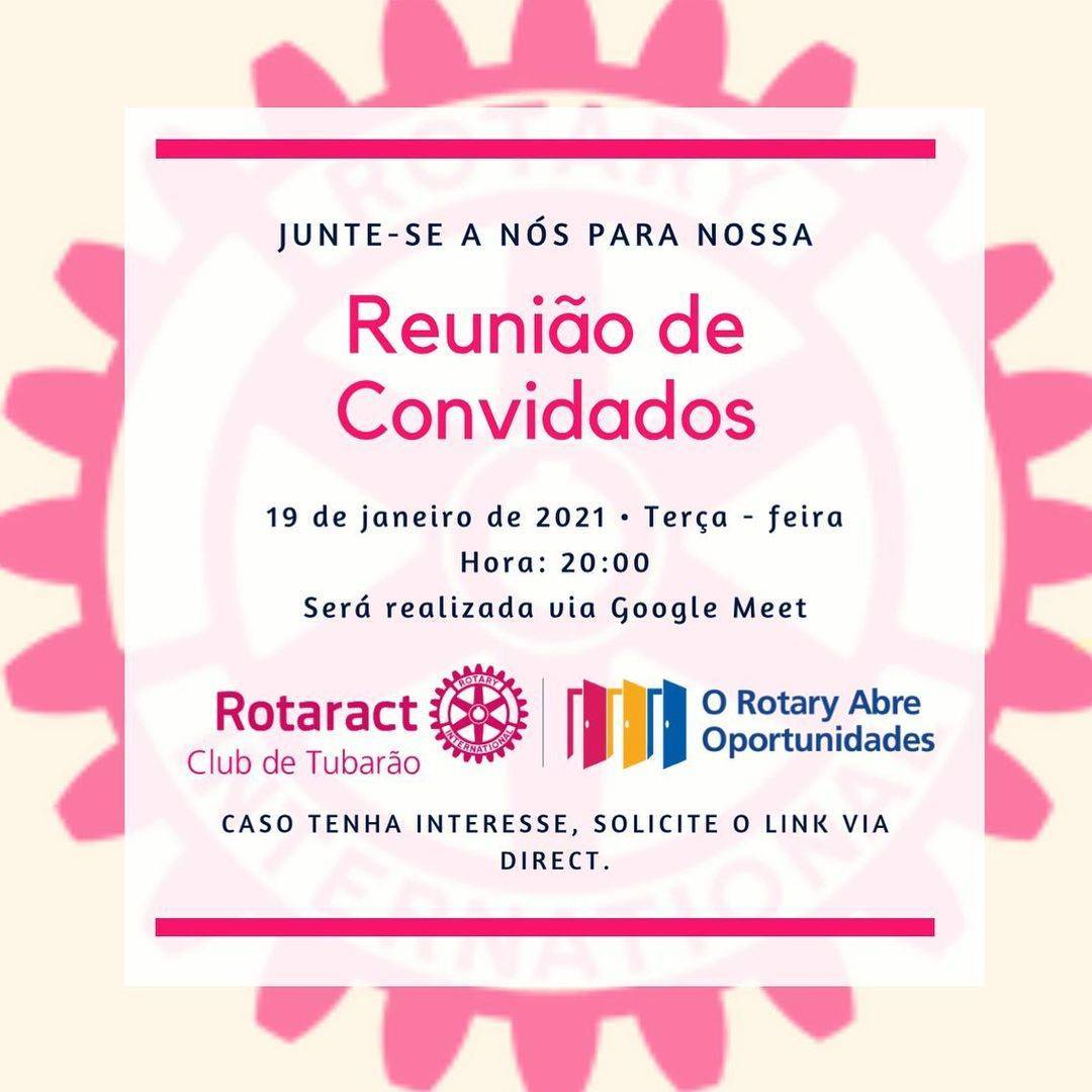 Esperamos vocês! Quem tiver interesse só mandar um direct no Instagram @rotaractclubdetubarao que enviamos o link da reunião!👩🏼💻
