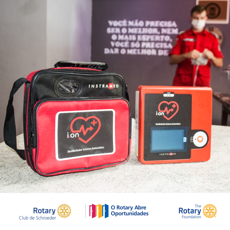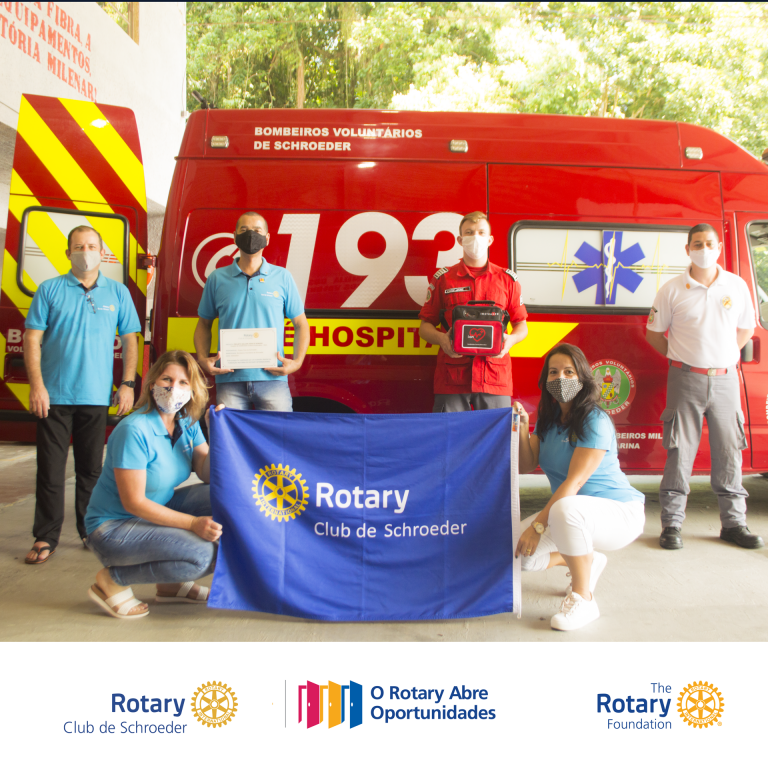 É com grande prazer e orgulho que, no último sábado (13/03), o Rotary Club de Schroeder fez a doação do equipamento D.E.A. (Desfibrilador Externo Automático) ao Corpo de Bombeiros Voluntários de Schroeder.