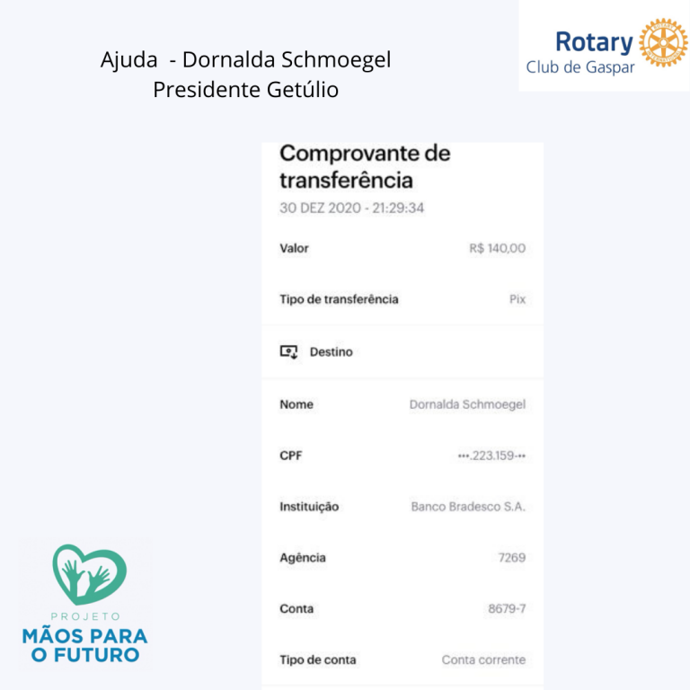 * R$ 140,00 – Doação para abrigo de Dornalda Schmoegel - Presidente Getúlio ( devido à tragédia)
