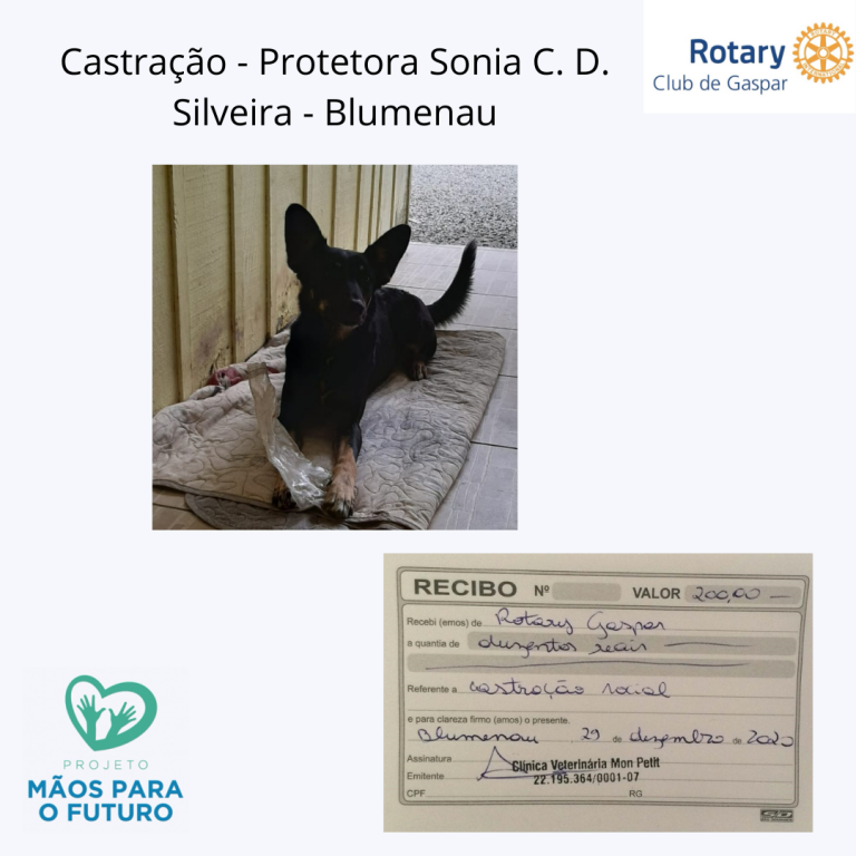 * R$ 200,00 – Ajuda para castração - Protetora Sonia C. D Silveira - Blumenau