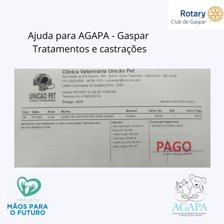* R$ 405,00 - Repasse para despesas da AGAPA - Gaspar
