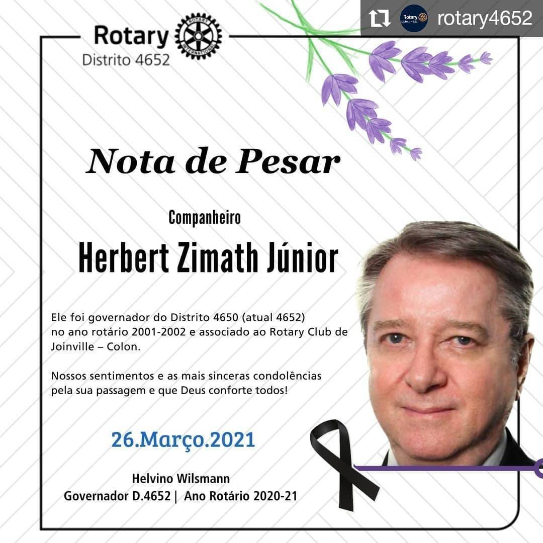 #Repost • @rotary4652 - É com profundo pesar que o Distrito 4652 informa o falecimento do companheiro Herbert Zimath Júnior, na tarde desta sexta-feira (26 de março). Ele foi mais uma vítima da Covid-19.