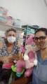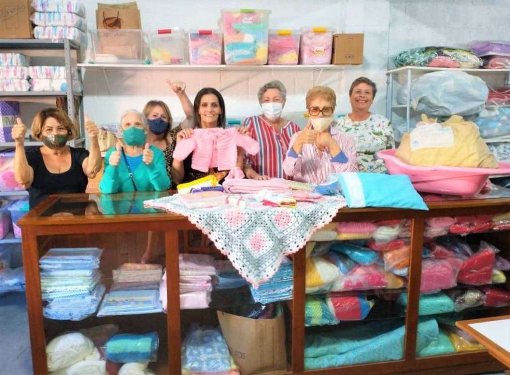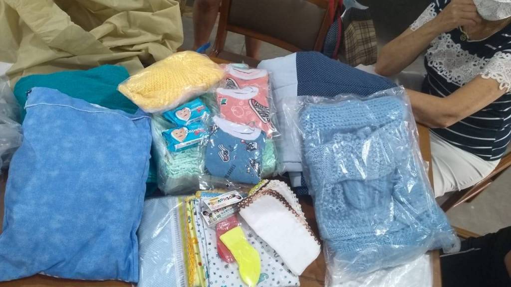 O Grupo é formado por 20 senhoras voluntarias, que reúnem-se as quintas feiras a tarde das 14 às 17 horas. Com a necessidade do isolamento social em função da pandemia, algumas senhoras permanecem em suas casas, mas continuam confeccionando as peças que compõem o kit: casaquinhos e sapatinhos de tricô, lençóis, fronhas, travesseiros, mantas de tricô e crochê, cueiros, paninhos de boca, sendo a maioria dos insumos – lãs, linhas, tecidos e aviamentos fornecidos pelo grupo.