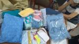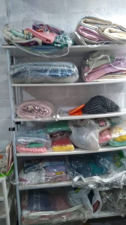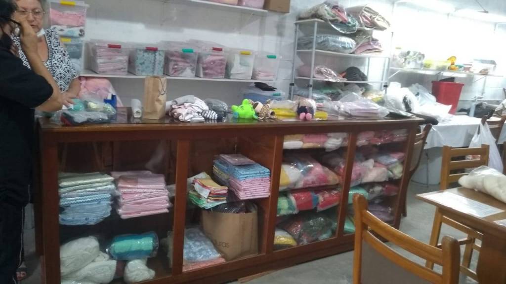 São adquiridas também fraldas, edredons, sabonetes, meias, conjuntinhos de malha, toalhas de banho, banheira e também material para peças artesanais– tricoline, flanela, plush, lãs, e aviamentos necessários.