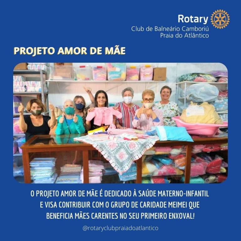 Amor de Mãe é um projeto do Rotary Club de Balneário Camboriú Praia do Atlântico dedicado à Saúde Materno-Infantil e visa contribuir com o Grupo de Caridade Meimei que beneficia mães carentes no seu primeiro enxoval.
