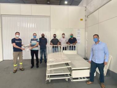 Atos de solidariedade inspiram correntes do bem em meio à pandemia. Mesmo diante do cenário difícil, sempre há motivos de ser grato. A Fundação Municipal de Saúde (FMS) recebeu nesta quinta-feira (3), com alegria, quatro camas hospitalares e 35 máscaras de proteção facial modelo shield. A doação foi realizada pelo Rotary Club de Tubarão Sul, através da Comissão de Serviços Humanitários, e em parceria com a 3ª Cia de Infantaria Motorizada de Tubarão.