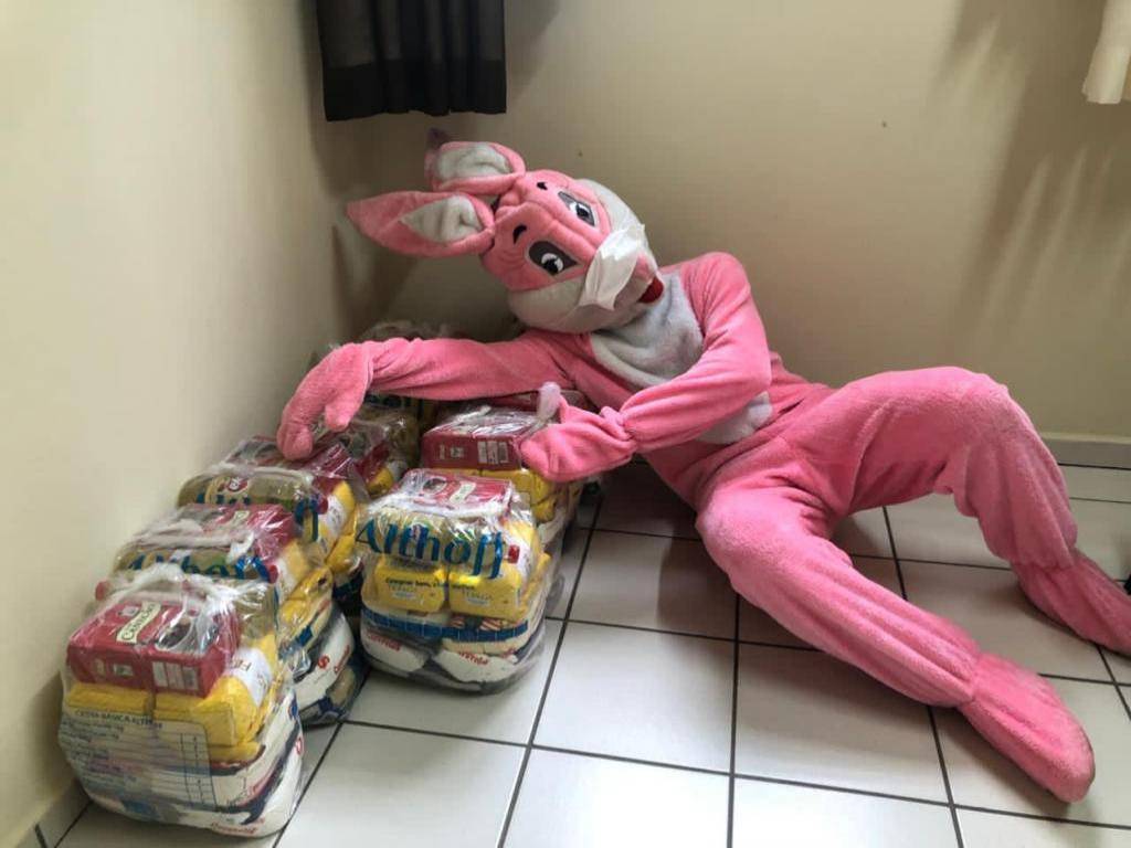Com a verba que sobrou das doações, foram compradas 11 cestas básicas, que foram doadas para 11 famílias da comunidade do bairro São João, onde as crianças do colégio Alda Hulse foram beneficiadas com os ovos. A Diretora Andréia informou que tem muitas famílias carentes na comunidade.