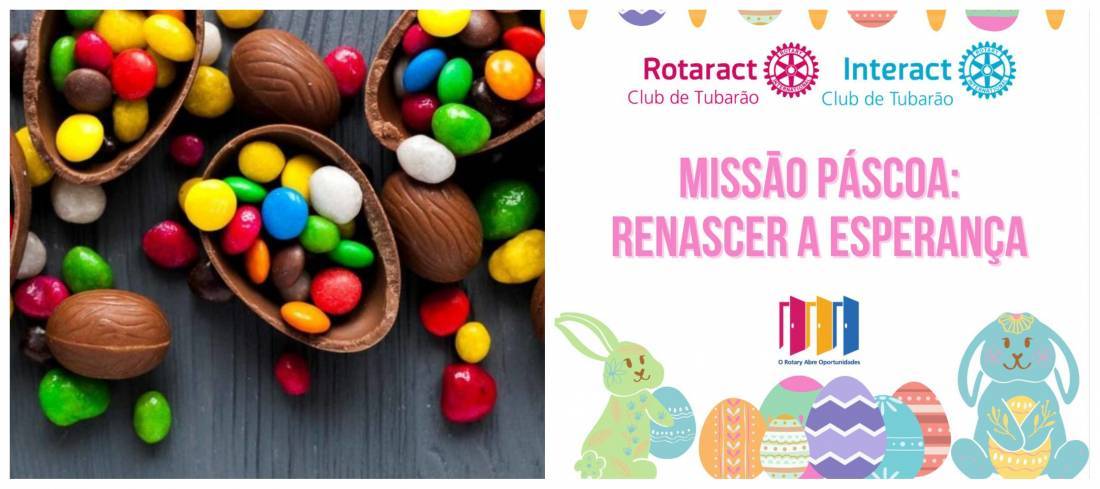 Em meio à pandemia de Covid-19 e o colapso na saúde, muitas crianças ficarão sem a atenção e a “magia” que envolve a Páscoa, que será celebrada no próximo dia 4 de abril. Pensando nisso, voluntários dos grupos Rotaract Club e Interact Club de Tubarão iniciaram a campanha "Missão Páscoa: Renascer a Esperança", para alegrar a Páscoa de cerca de 200 crianças do município.