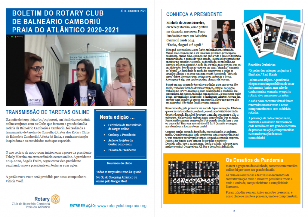 BOLETIM DO ROTARY CLUB DE BALNEÁRIO CAMBORIÚ PRAIA DO ATLÂNTICO 2020-2021