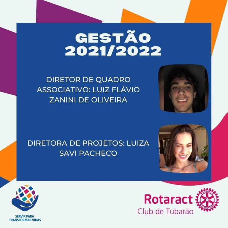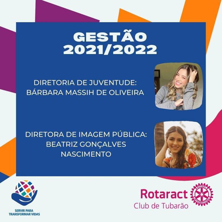 E com ele, se inicia também uma nova gestão! Assim, apresentamos para vocês os cargos, e os companheiros que os assumem, da Gestão 2021/2022 do Rotaract Club de Tubarão!👏🏼💗