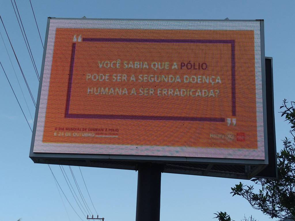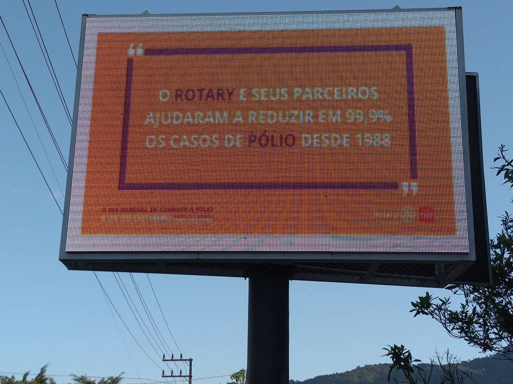 O clube também conseguiu uma publicação no outdoor digital na rua Marechal Castelo Branco lembrando a quem passa sobre a luta do Rotary e todos nós contra a Pólio. Agradecimentos especiais a Walle Comunicação e Aliança Contabilidade que gentilmente cederam o espaço.