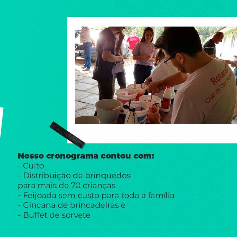 Dia 12 de Outubro, o Rotaract Club de Ibirama realizou um projeto em parceria com o Rotaract Club de Vitor Meireles promovendo uma ação no Dia das Crianças em uma comunidade no interior de Vitor Meireles.