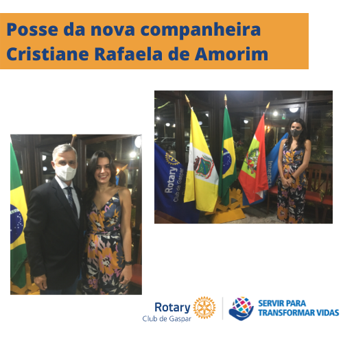 No dia 26/10/21 aconteceu a posse da nova companheira do Rotary Club de Gaspar, Cristiane Rafaela de Amorim.
