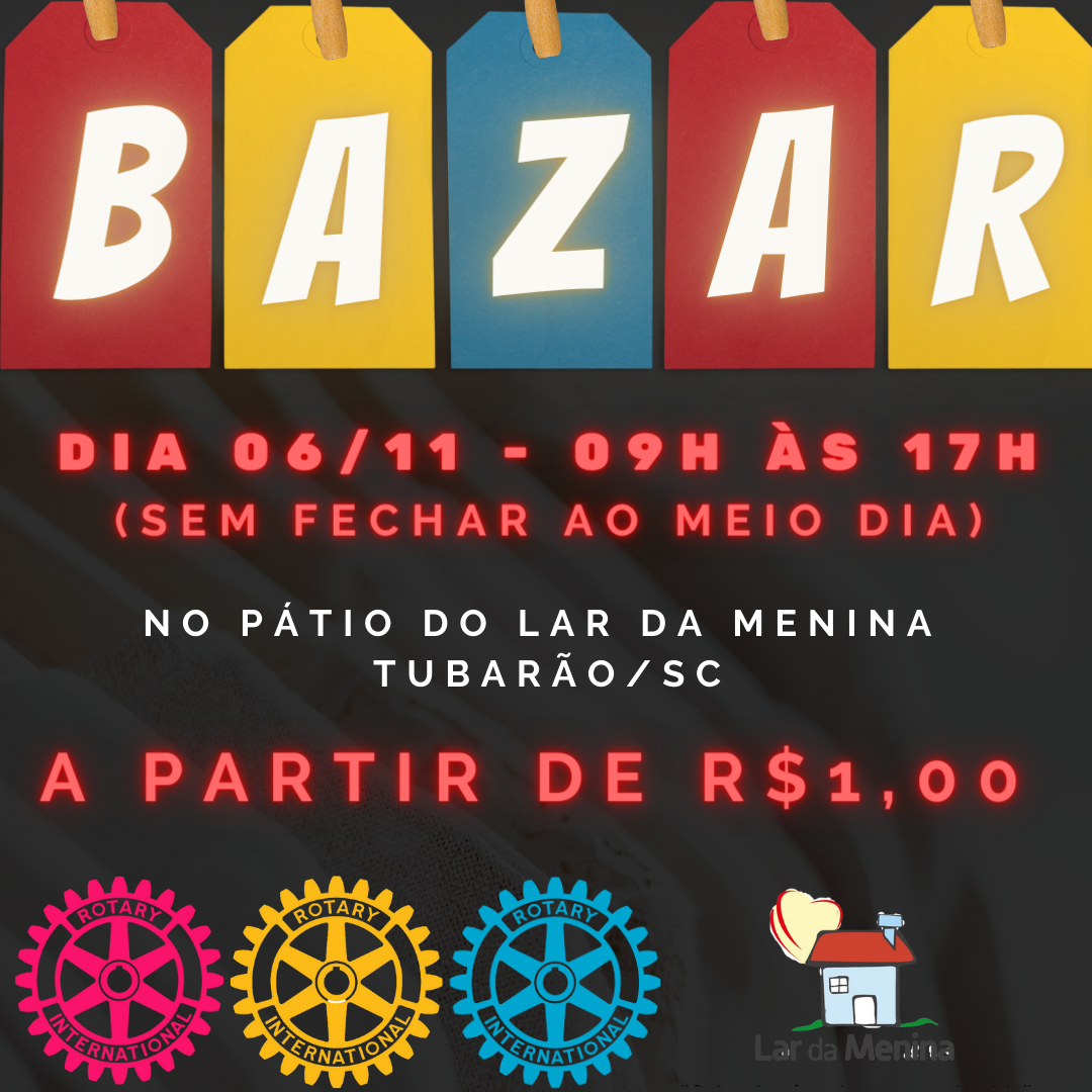 É neste sábado (06/11), das 09h às 17h, sem fechar ao meio dia, no pátio do Lar da Menina, Tubarão/SC! ✨Peças a partir de R$ 1,00!✨
