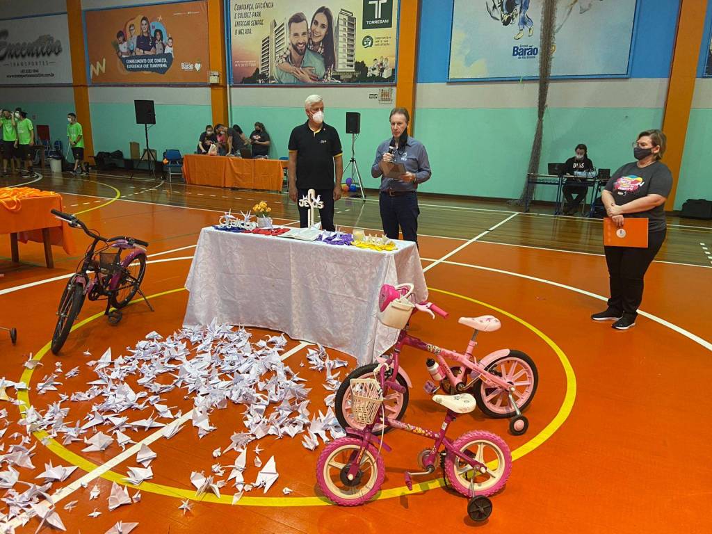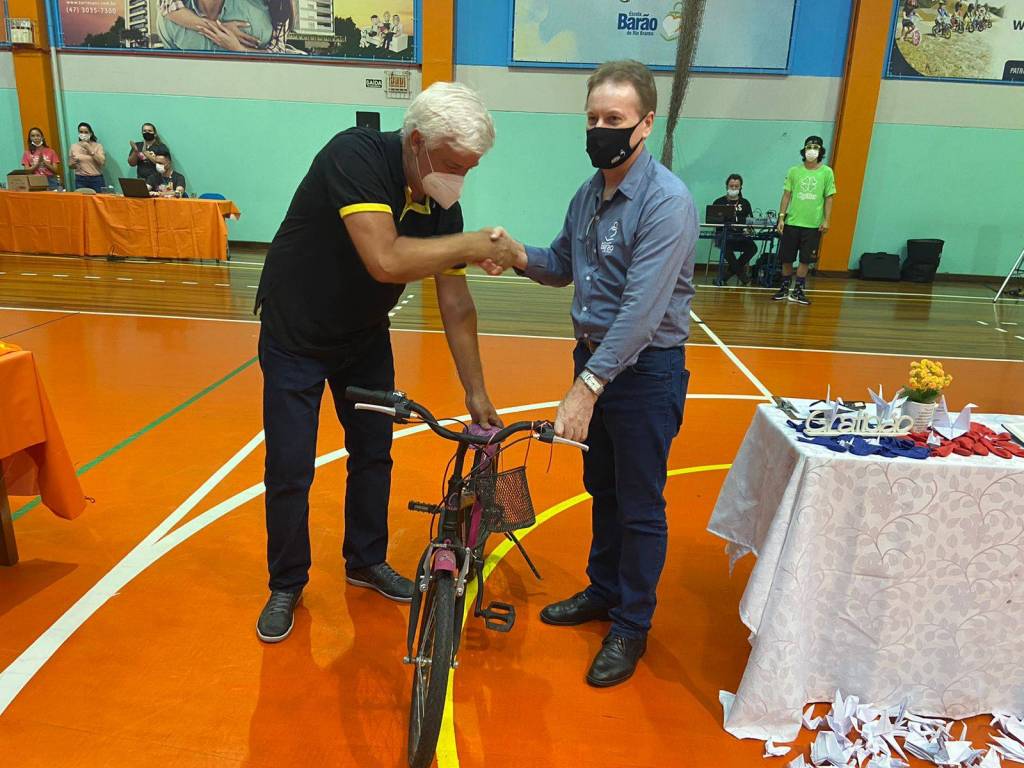 O ato festivo da doação contou com a presença de alunos e Direção da Escola Barão do Rio Branco que fizeram a entrega de 21 bicicletas para o projeto Ciclovia da Alegria.