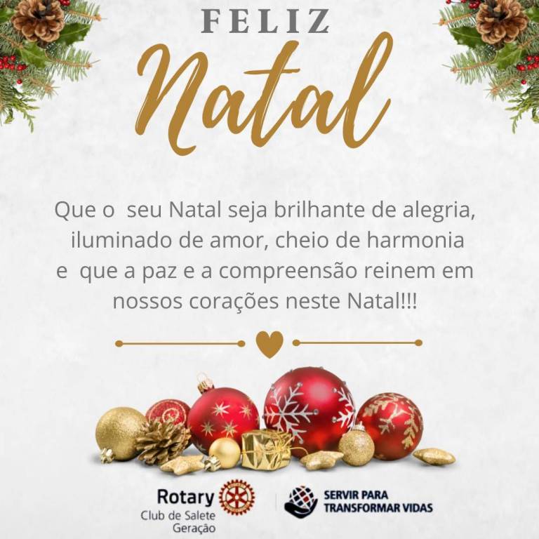 O Rotary Club de Salete-Geração deseja a todos um Feliz Natal repleto de esperança assim como o nascimento do menino Jesus!!