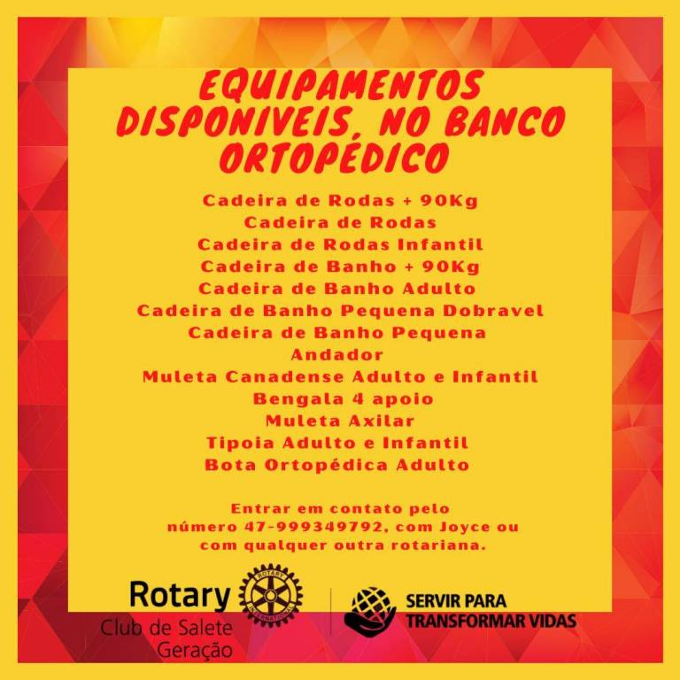 Venha conhecer o Banco Ortopédico do Rotary Club de Salete-Geração!
