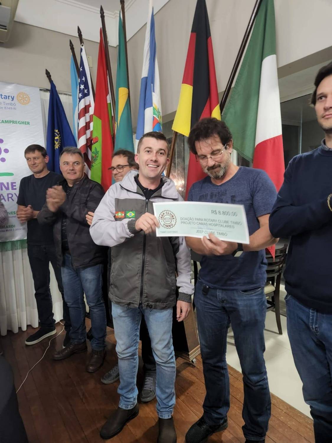 O Jeep Club de Timbó realizou a doação de R$ 8.800 ao Rotary Club de Timbó para o projeto de empréstimos de camas hospitalares.