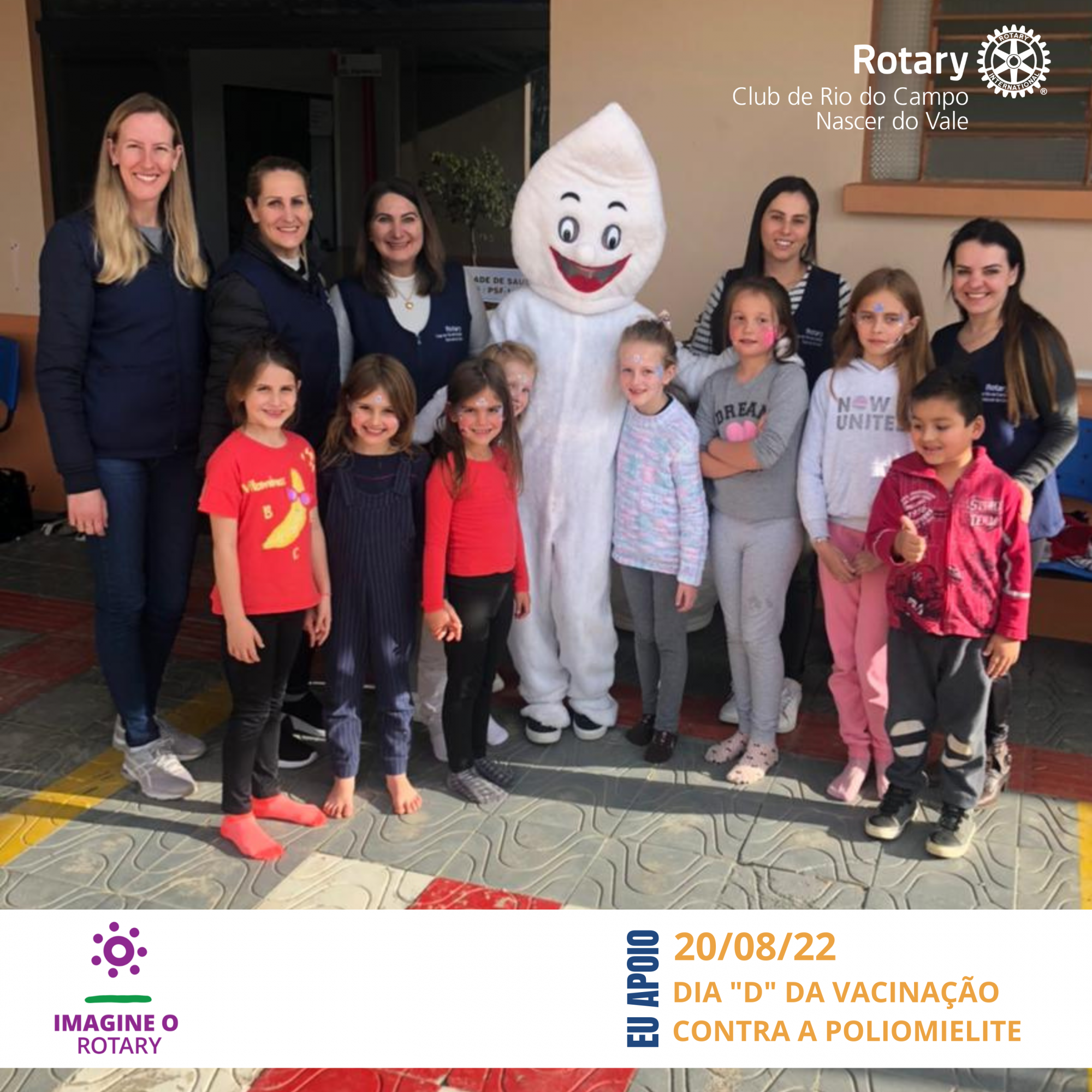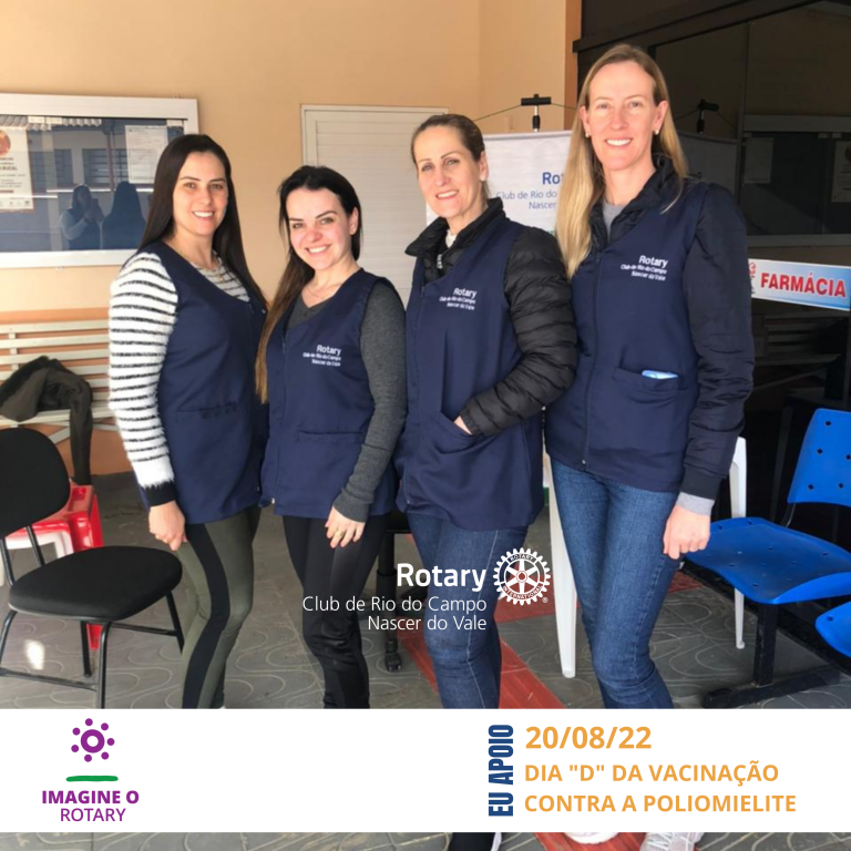 O Rotary Club de Rio do Campo Nascer do Vale, esteve presente na unidade básica do nosso município, no dia 20/08/2022, que foi o dia "D" de vacinação contra a Poliomielite.