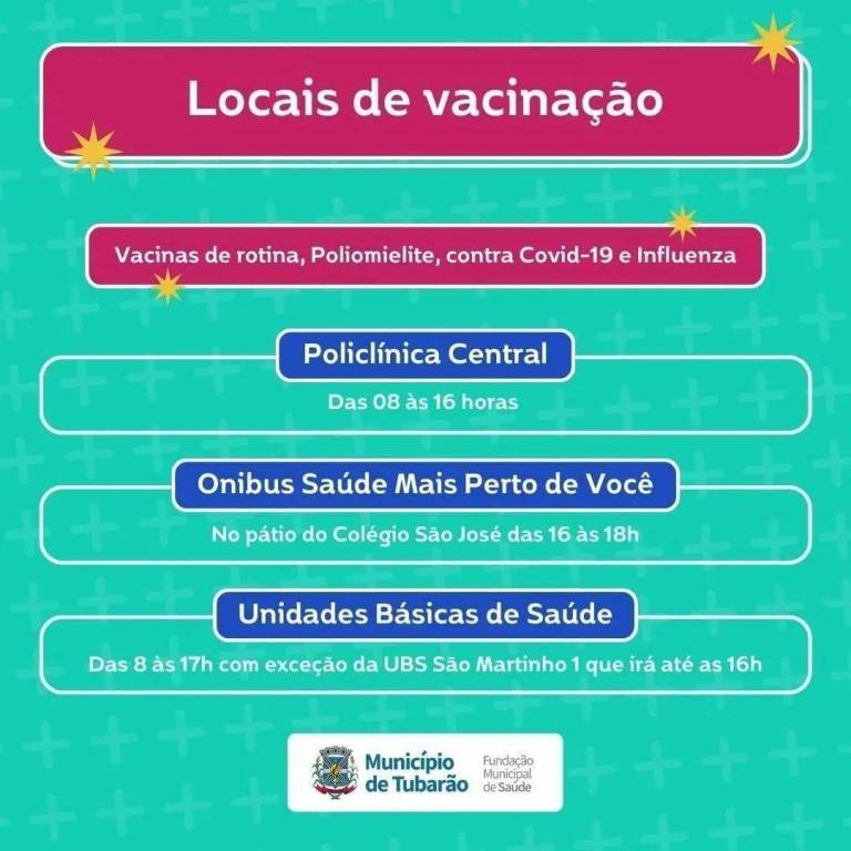- Unidades Básicas de Saúde que possuem Salas de Vacina (link na bio), das 8 às 17 horas (exceto São Martinho I que estará aberta até as 16 horas);