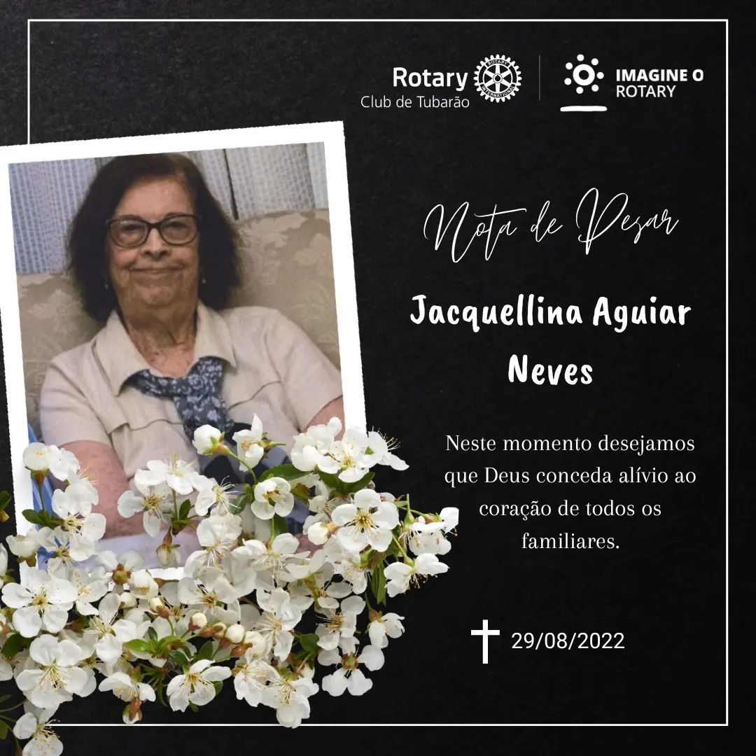 É com profundo pesar que noticiamos o falecimento de Jacquellina Aguiar Neves, esposa do Companheiro Honorário Cornélio Vieira Neves.