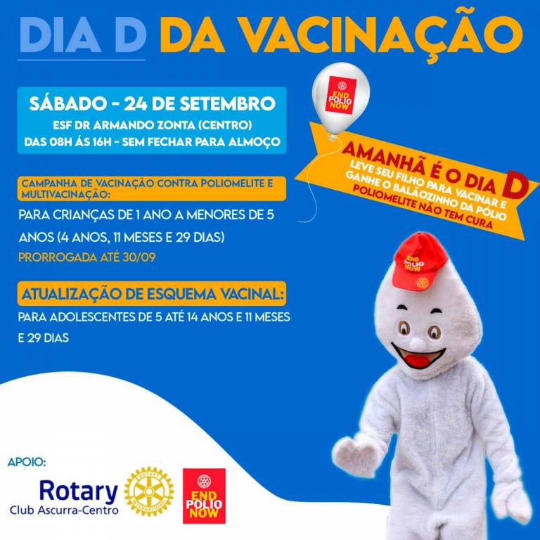 A Família Rotária participou da divulgação da vacinação Pólio. Segundo a prefeitura a meta foi atingida.