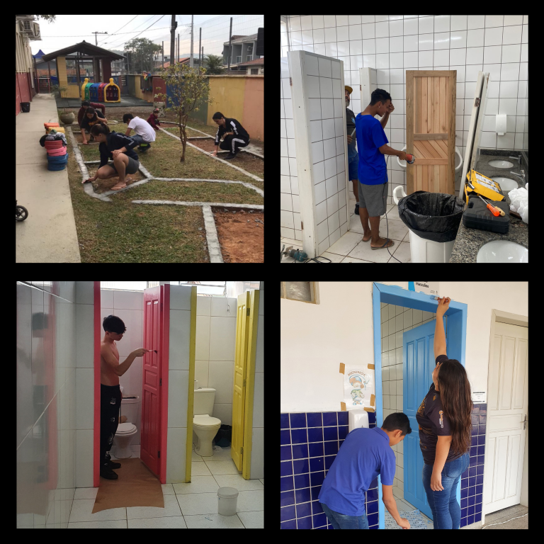 - Pintura das portas dos 6 banheiros utilizados pelos alunos, totalizando 21 portas