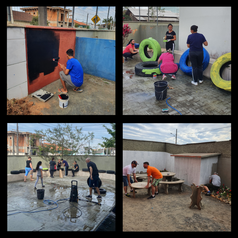 Participaram do mutirão aproximadamente 45 pessoas, incluindo membros da comunidade, professores, pais, alunos e integrantes do Rotary Club de Joinville Manchester.