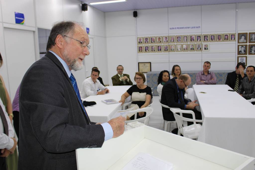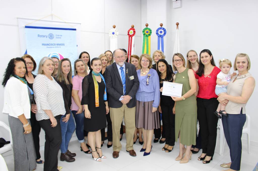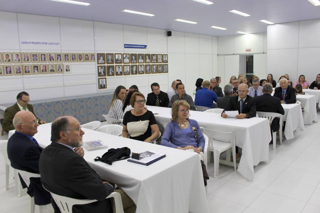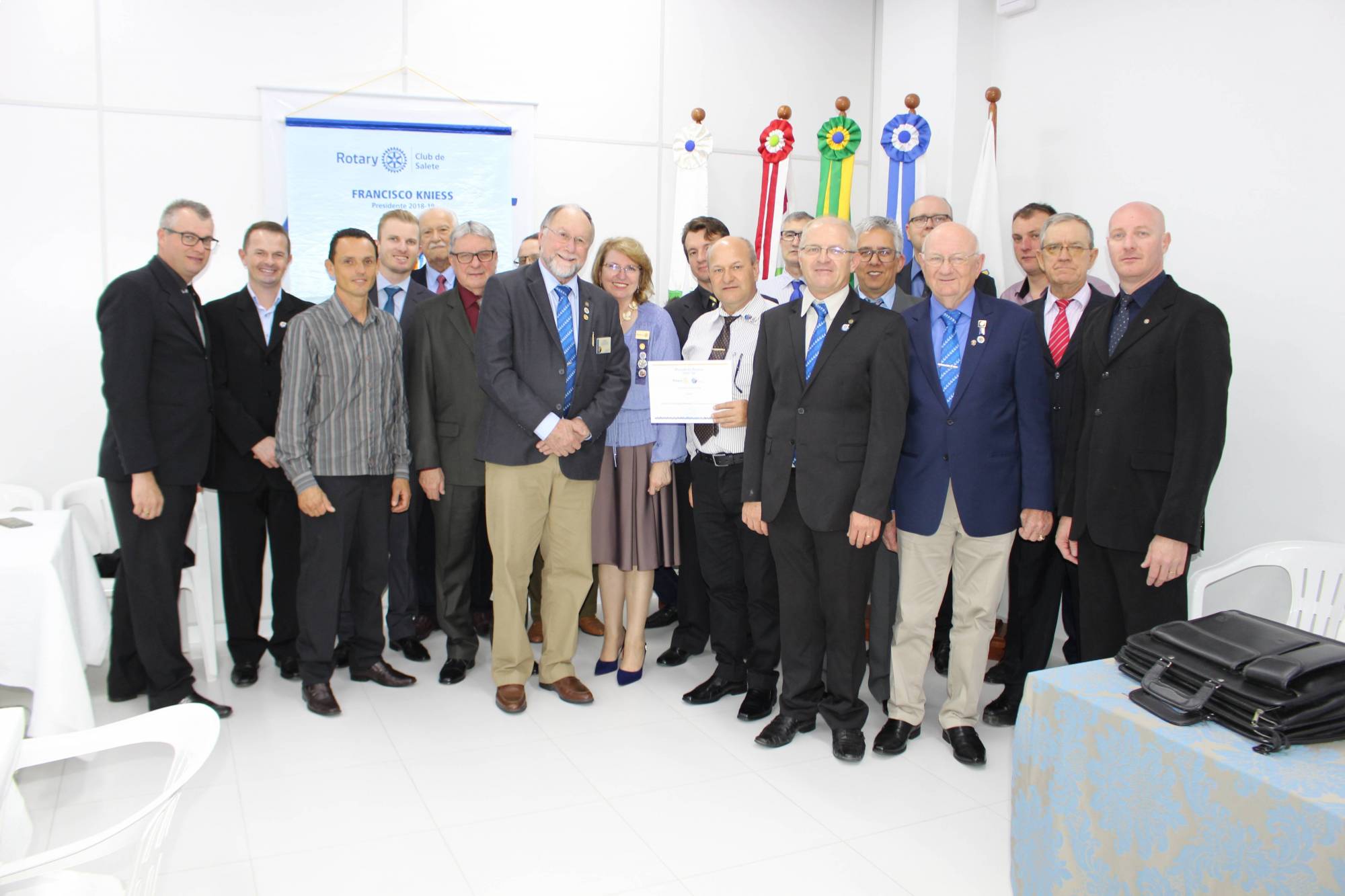 Sob o lema “Seja a Inspiração”, o presidente do Rotary Club de Salete, ano rotário (2018/2019), Francisco Kniess, abriu a solenidade agradecendo a presença de todos e em especial da visita ilustre do Governador.