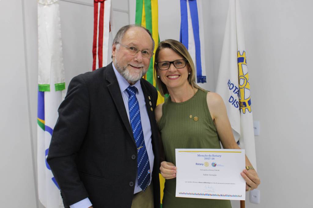 “Sempre é uma honra receber rotarianos de outros clubes e o nosso Governador do Distrito. Sentimo-nos honrados e felizes com a entrega da menção presidencial, conquistada na gestão do companheiro presidente do ano rotário (2017/2018), José Tadeu Tenfen”, lembrou Francisco.
