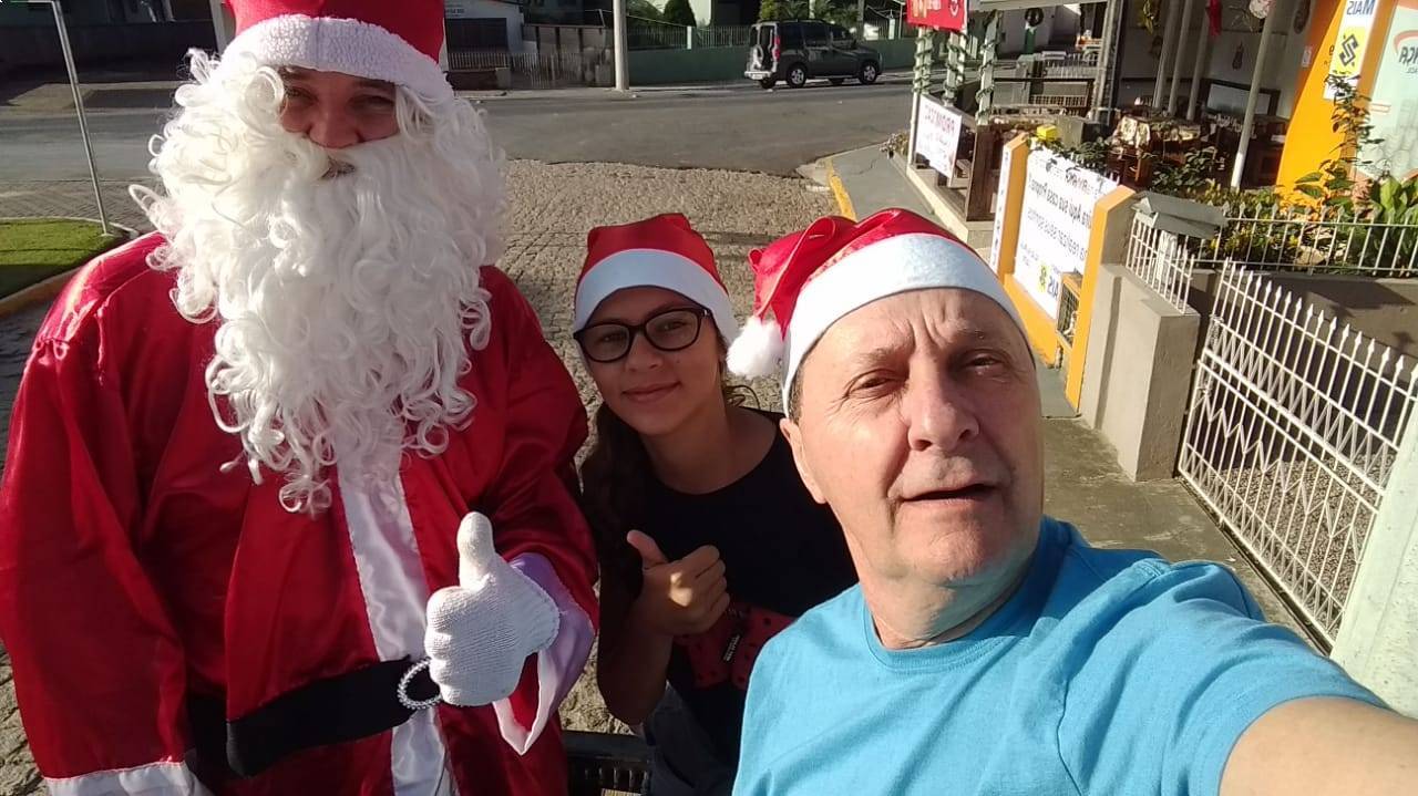 Os associados Moacir dos Santos e Ivandro Nitz organizaram a entrega de balas pela cidade, o Papai Noel fez a alegria da criançada!