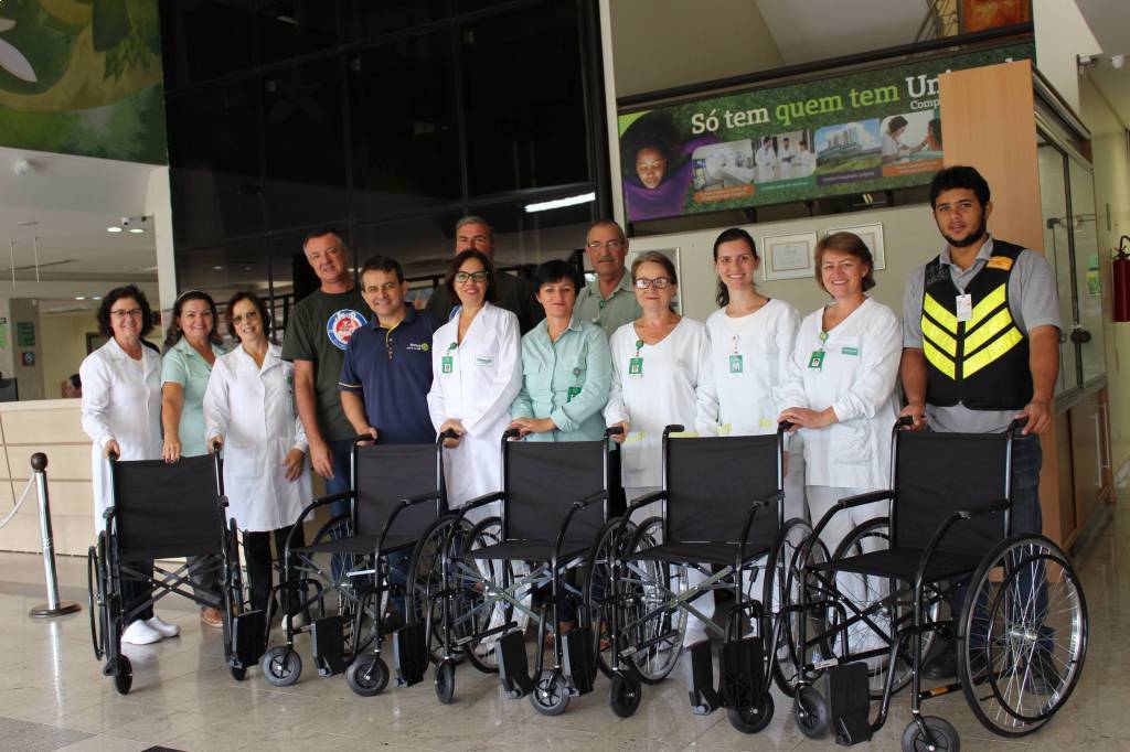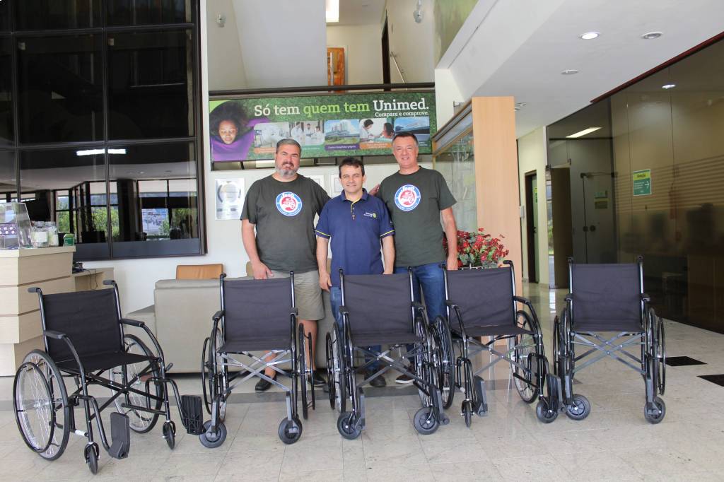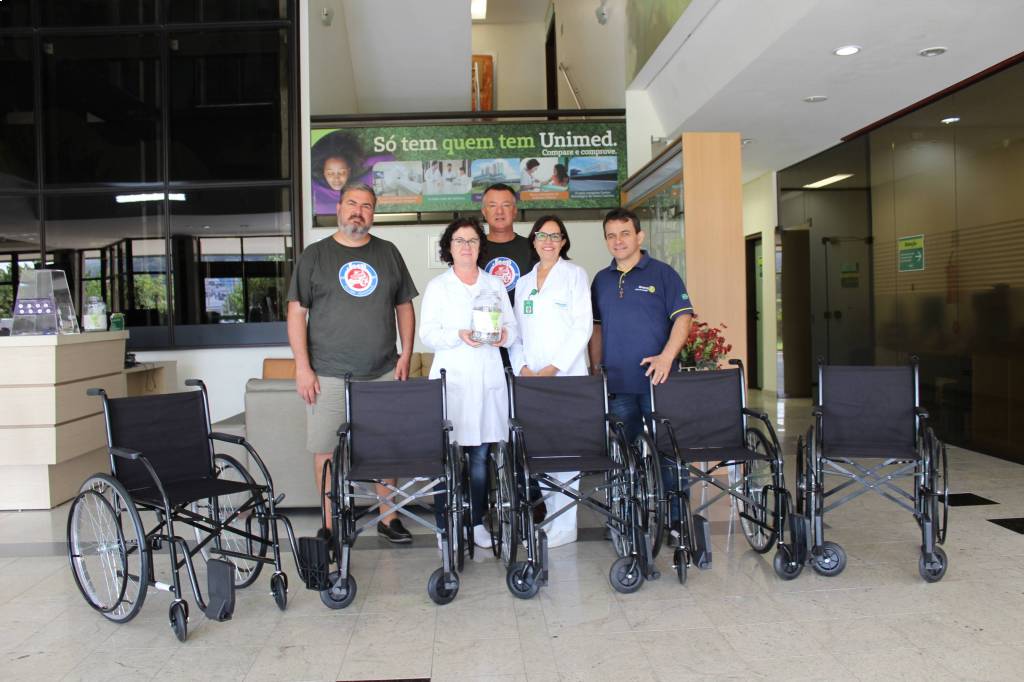Ação tri-legal!!! Em 31/01, foram entregues 5 cadeiras de rodas à UNIMED Joinville; As cadeiras foram viabilizadas através da arrecadação de lacres pelo Jeep Clube, trocados por cadeiras de rodas através do já reconhecido projeto do Rotary Club de Joinville.
