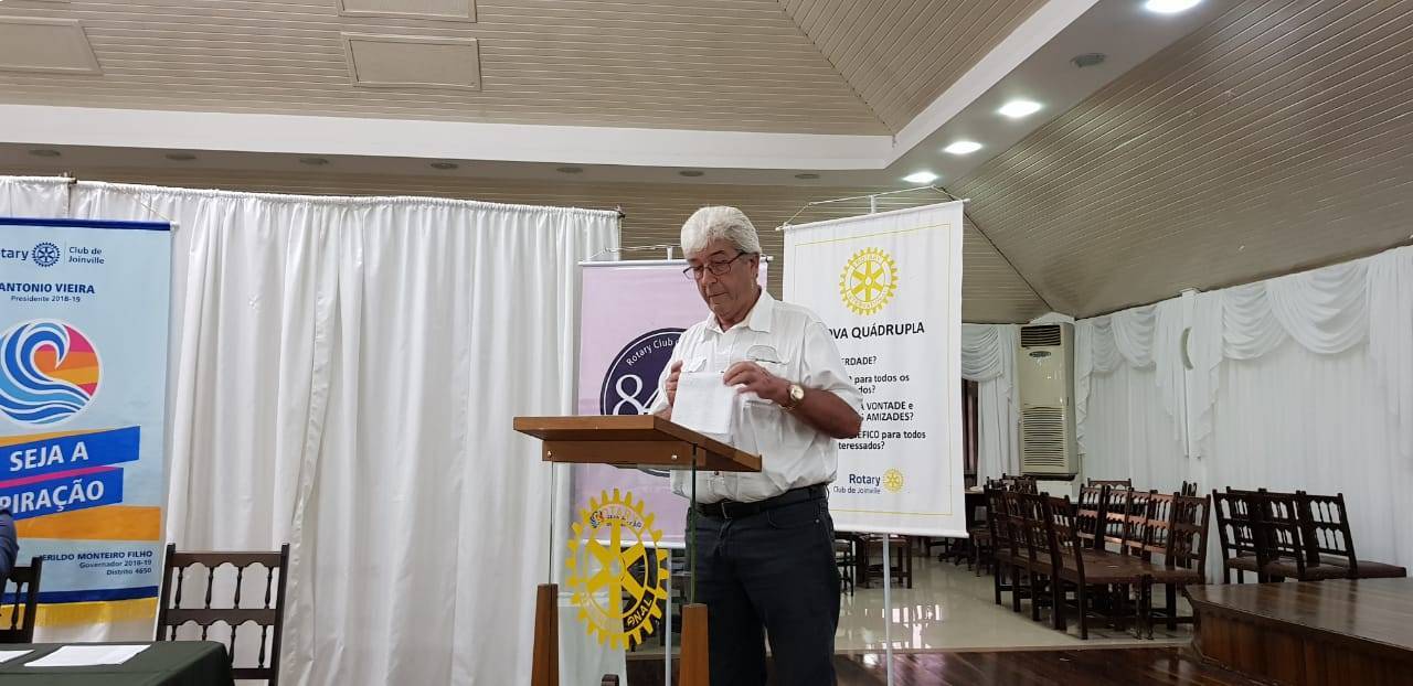 O Rotary Club de Joinville foi o precursor do movimento rotário no Estado de Santa Catarina, completando em 2019 seus 85 anos de fundação. O primeiro clube de Rotary do Estado atualmente é composto de companheiros de diversas faixas etárias, unidos em torno de um mesmo ideal: inspirar e fazer a diferença em favor da humanidade. Foi marcante aos companheiros presentes acompanhar a palavra livre do companheiro SIGFRIED SCHLACHTER, Alemão de nascimento e Brasileiríssimo de coração, que aos 78 anos é associado representativo de nosso clube, e nos prestigiou contando sua história de vida.