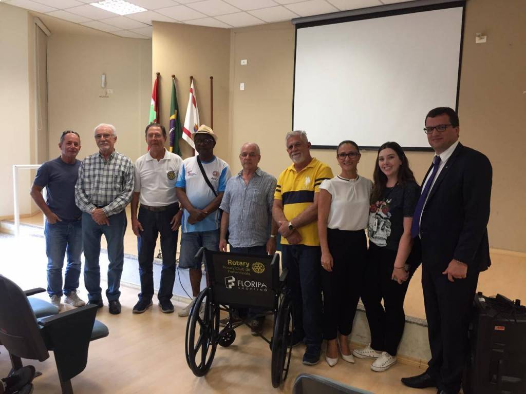Rotary Club de Florianópolis em Ação e escrevendo a sua história: no dia 11 de março de 2019, o presidente 2018-19, companheiro Augusto César Zeferino, acompanhado dos companheiros Eder Vieira Couto, Norton Candemil Pereira, Adriano Zanotto e Janaína Guesser Prazeres, presidente eleita 2019-20, entregaram em doação, uma cadeira de rodas para a Associação Caarinense para Integração do Cego - ACIC, obtida num dos Projetos desenvolvidos pelo Clube, o "Lacre é Cidadania", em parceria com o Floripa Schopping, que também estava representado pela Srta. Amanda. Na oportunidade, o presidente do Rotary Club de Florianópolis, companheiro Augusto César Zeferino e o presidente da ACIC, Sr. Henrique, formalizarm o Contrato de Doação. Também estavam presentes ao evento evento, os convidados da ACIC.