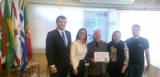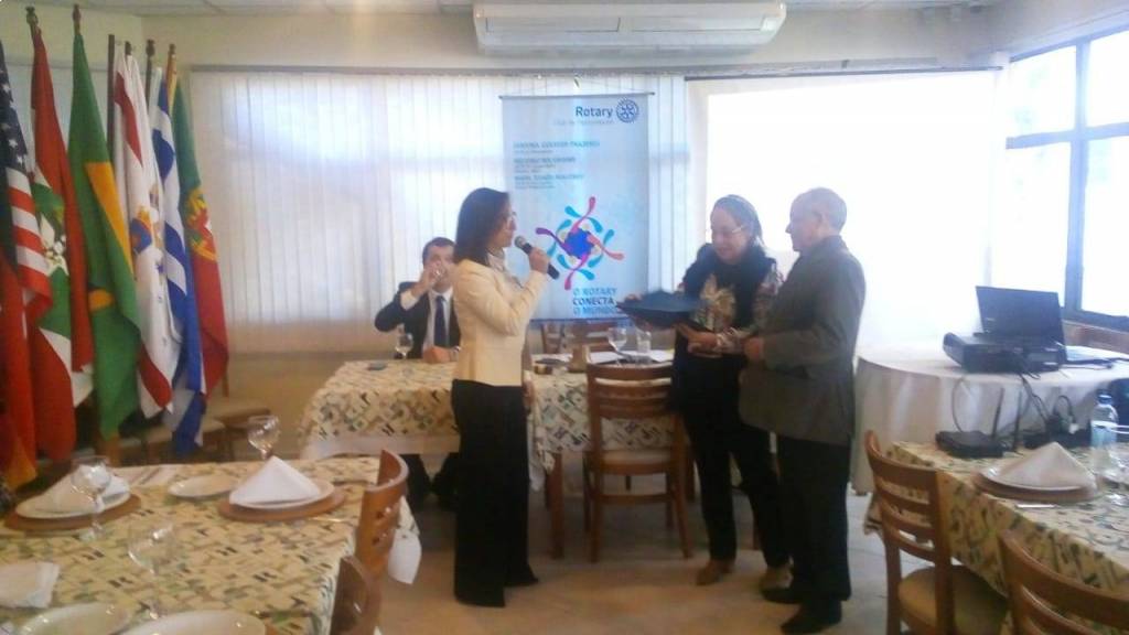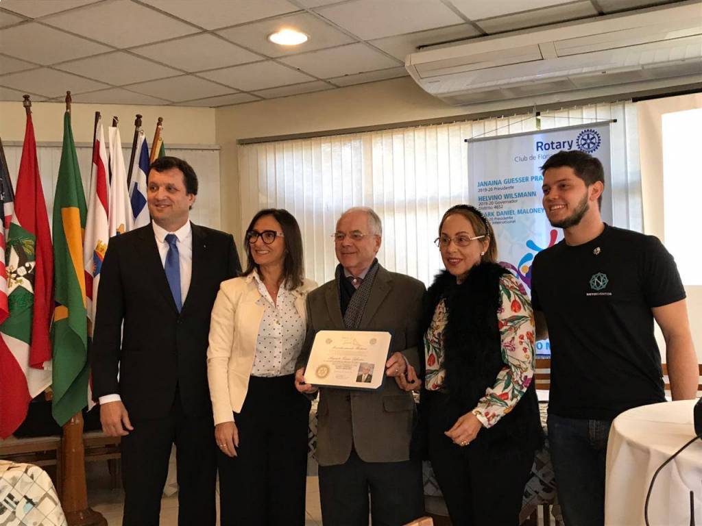 Administracão 2019-20. O companheiro Adriano Zanotto usou a tribuna e fez uma homenagem ao companheiro Augusto César Zeferino, presidente 2017-18 e 2018-19. A presidente companheira Janaina fez a entrega de um certificado de agradecimento ao companheiro Augusto pelos relevantes serviços prestados ao RC de Florianópolis. A reunião contou com a presença de muitos associados e de convidados.