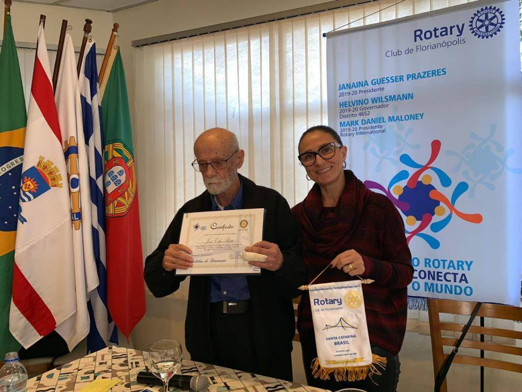 Destaque da renião para a homenagem ao Companheiro José Edu Rosa que completou 60 anos de vida rotária em nosso Clube. E com muita emoção e alegria os companheiros Paulo Tatim e Maria Atherino Neves contaram um pouco da história do nosso homenageado. A companheira Sônia Lamego também deu sua contribuição enriquecendo a homenagem.