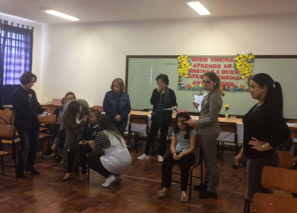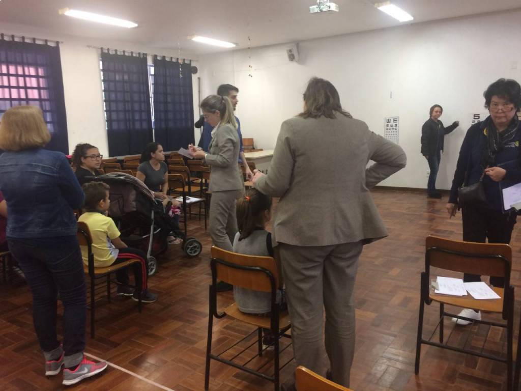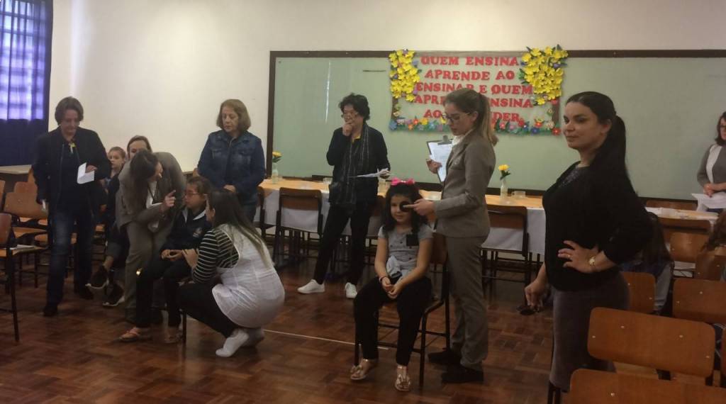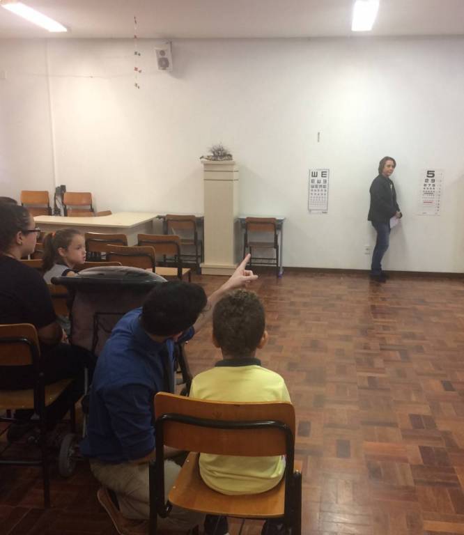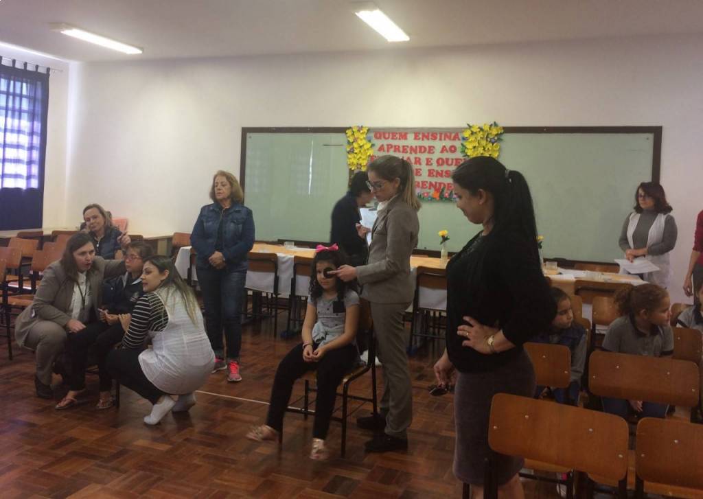 A 1ª fase foi uma prévia da acuidade visual (teste de visão) das crianças realizada pelos gestores da Escola Municipal Professora Thereza Mazzolli Hreisemnou, 213 crianças foram examinadas e 19 serão encaminhadas para exames mais específicos.