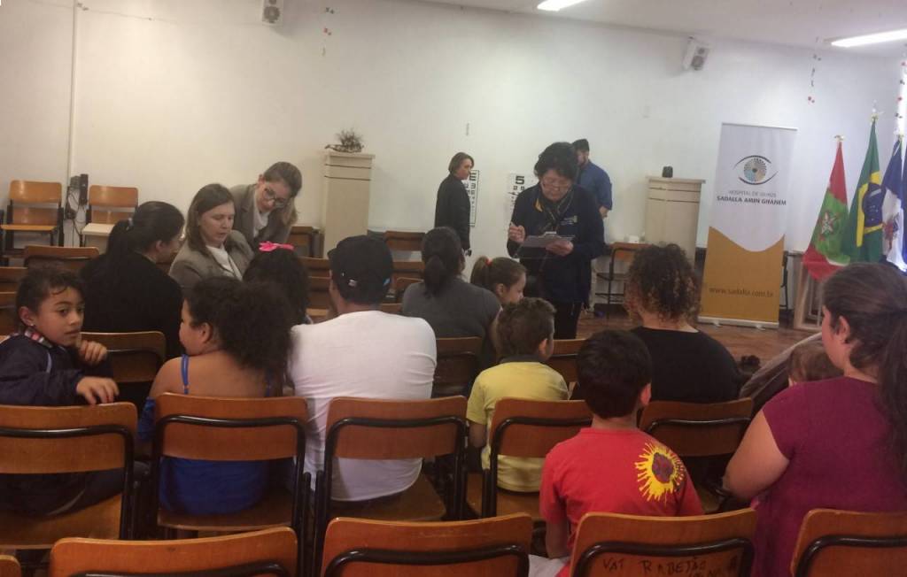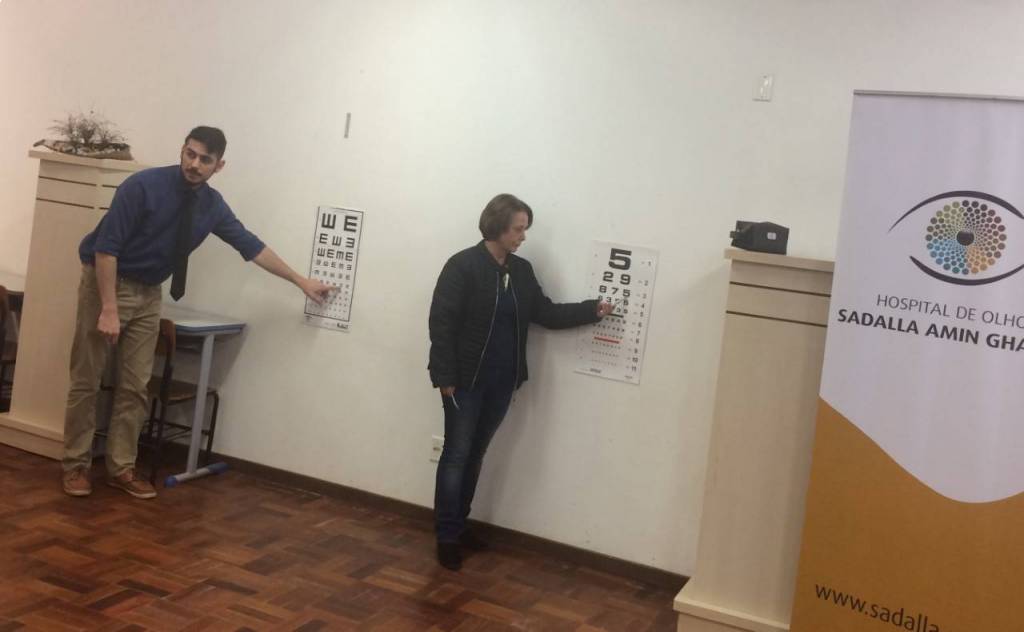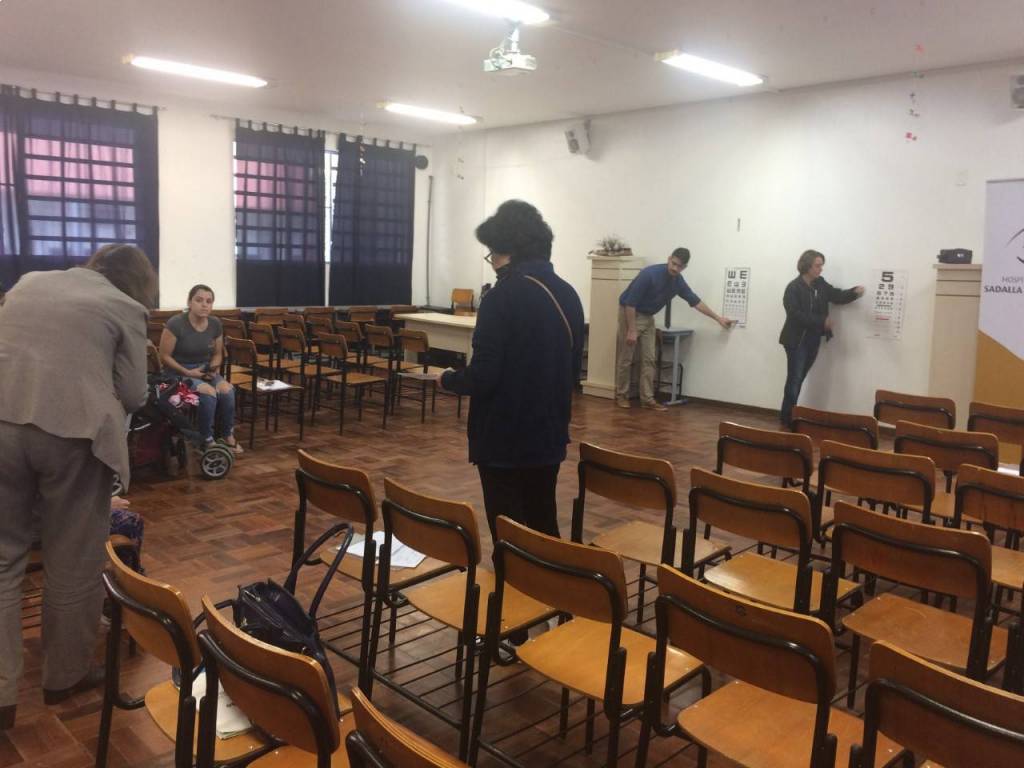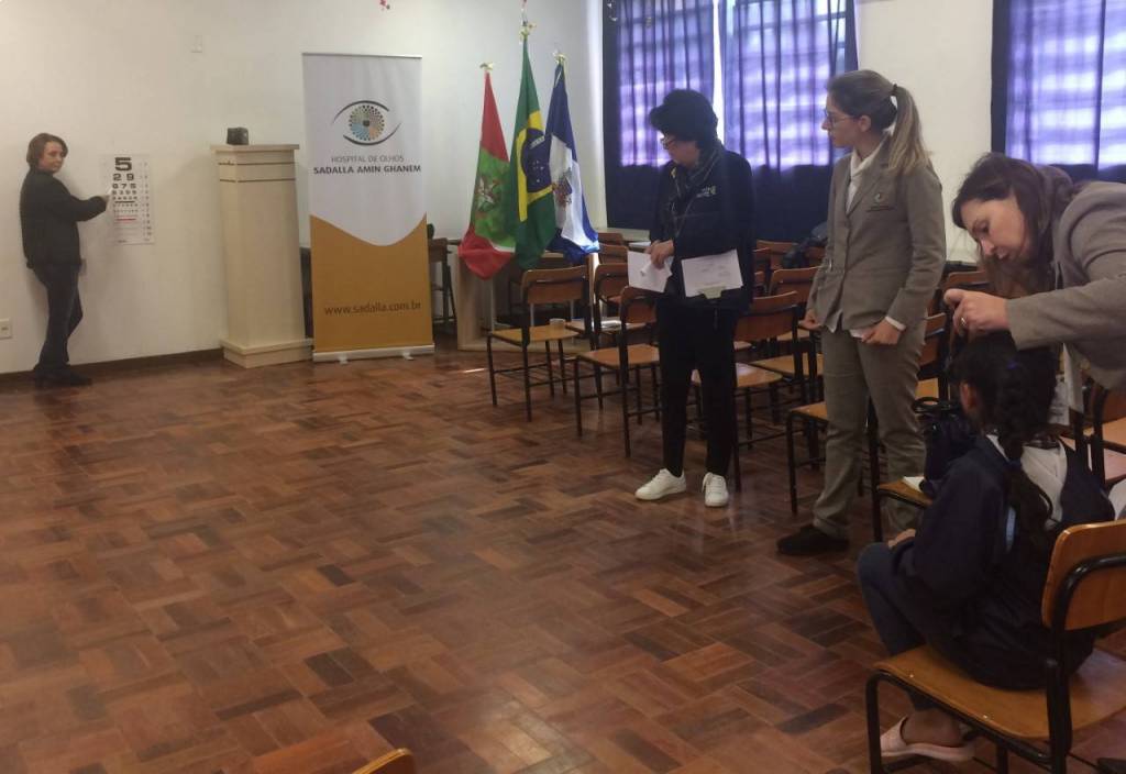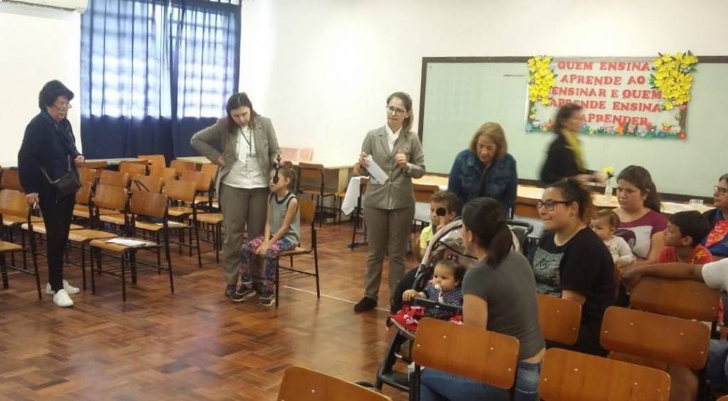 A 1ª fase foi uma prévia da acuidade visual (teste de visão) das crianças realizada pelos gestores da Escola Municipal Professora Thereza Mazzolli Hreisemnou, 213 crianças foram examinadas e 19 serão encaminhadas para exames mais específicos.