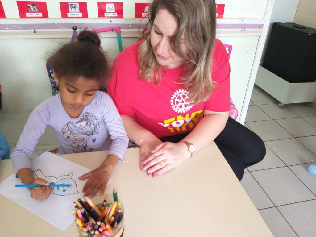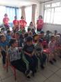 Durante a palestra em atividades lúdicas as crianças recebem a "gotinha que salva" em forma de cheveirinho, balões e desenhos do "Zé Gotinha" para pintar.