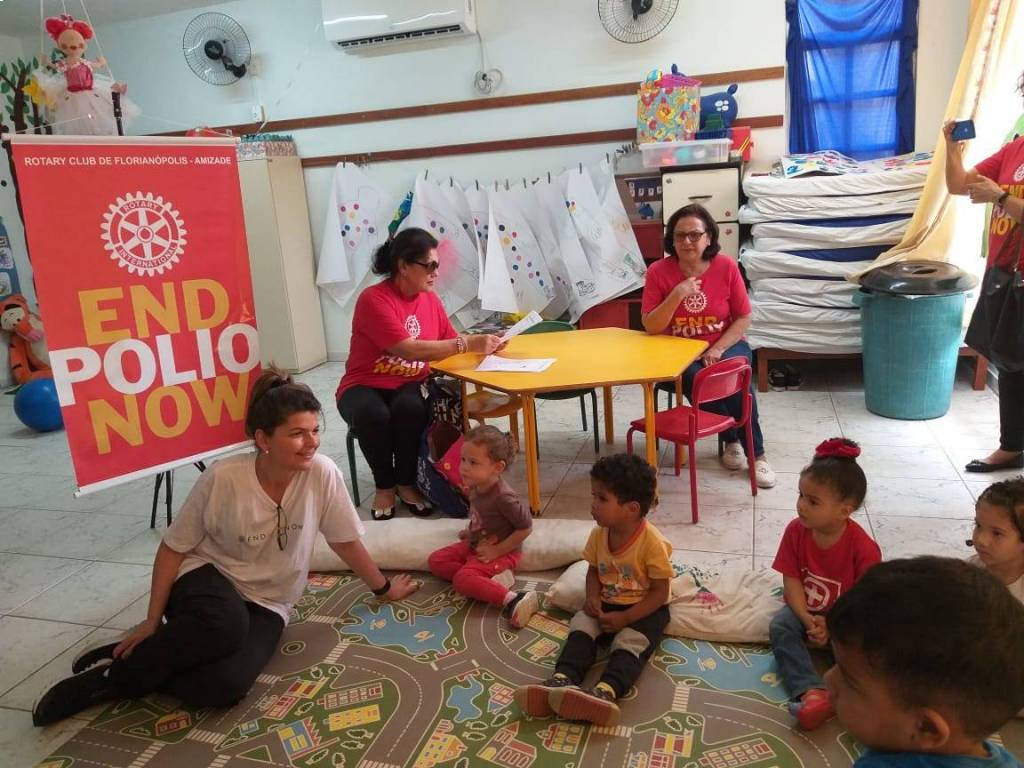 Divulgação da Campanha Mundial de Comabte à Poliomielite "End Polio Now" nas creches com a entrega de panfletos para a direção, professores, demais funcionários e pais.