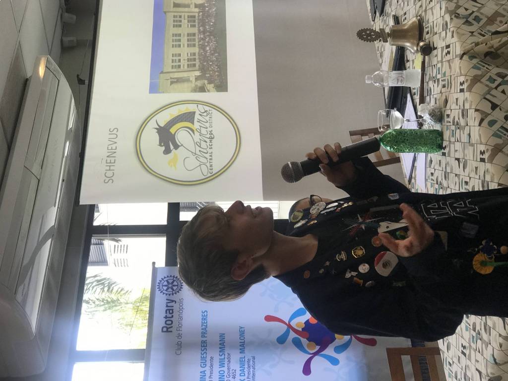 Presenças de associados, visitantes e convidados, e em especial do jovem intercambista Arthur Leal Tatim, neto do companheiro Paulo Tatim, que participou do Programa de Intercâmbio de 2018-19, nos EUA e apresentou um excelente relato do seu intercâmbio, oportunidade em que conheceu novas culturas, costumes, viajando por novos lugares e fez muitas amizades tendo sido uma experiência enriquecedora para a sua vida. Também participaram da reunião os candidatos ao Programa de Intercâmbio de Jovens 2020-21, Julia Novaes Pereira, neta da companheira Lourdes Novaes, do Rotary Florianópolis- Amizade, Vitor Hoffmann Vianna, neto do companheiro Abelardo Vianna, Governador 1995-96 e o jovem Sérgio Coimbra, que participou do Programa de Intercâmbio de Jovens 2016-17, na França, como afilhado do Rotary Club de Florianópolis.