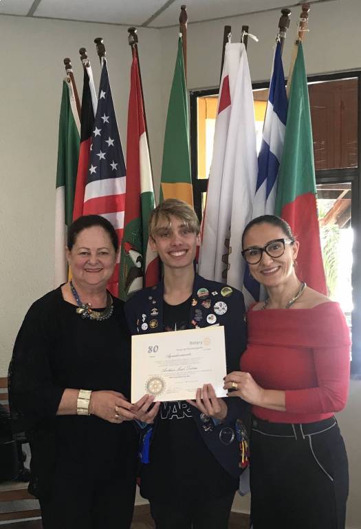 A companheira presidente fez a entrega de um Certificado de Agradecimento ao jovem Arthur Leal Tatim pela excelente apresentação do relato de sua experiência no intercâmbio realizado, tendo sido muito aplaudido.