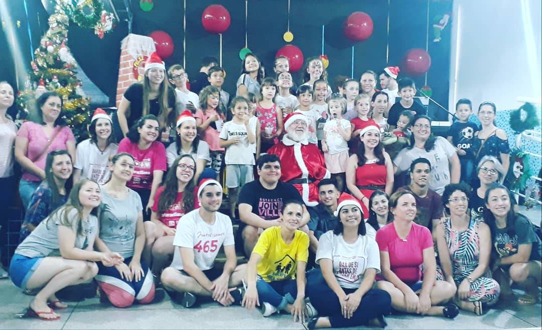 No dia 14/12 os companheiros do Rotaract Club de Joinville realizaram uma ação de Natal em uma escola carente no bairro Cubatão. A ação foi liderada pelas associadas Giulia, Carolina e Sara que planejaram toda a ação. Mas todos os associados participaram dos bastidores e também das oficinas propostas pelo clube, como pintura do rosto, enfeites, biscoitos, histórias, show de música e a surpresa da chegada do Papai Noel entregando doces para a criançada ! Foi muito bacana!