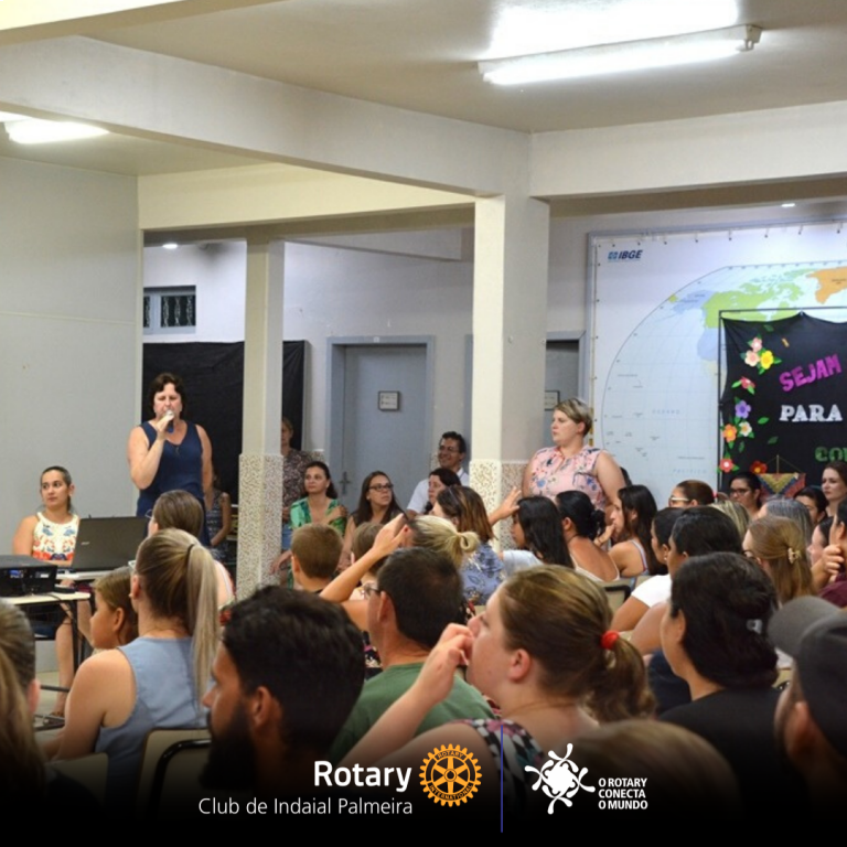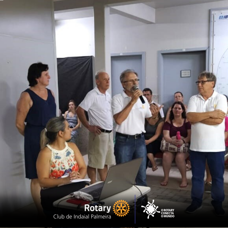 Fizemos uma explanação aos pais dos alunos, sobre NRDC, qual a razão da presença do Rotary Club Indaial Palmeira nas escolas; qual o projeto principal nesta escola, o que já foi feito até o momento e os avanços quanto ao terreno ao lado da Escola que pretendemos juntar à matrícula principal da escola.