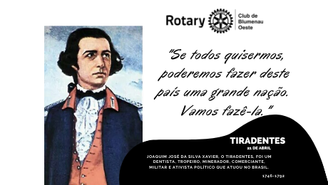 “Se todos quisermos, poderemos fazer deste país uma grande nação. Vamos Fazê-la” Tiradentes.