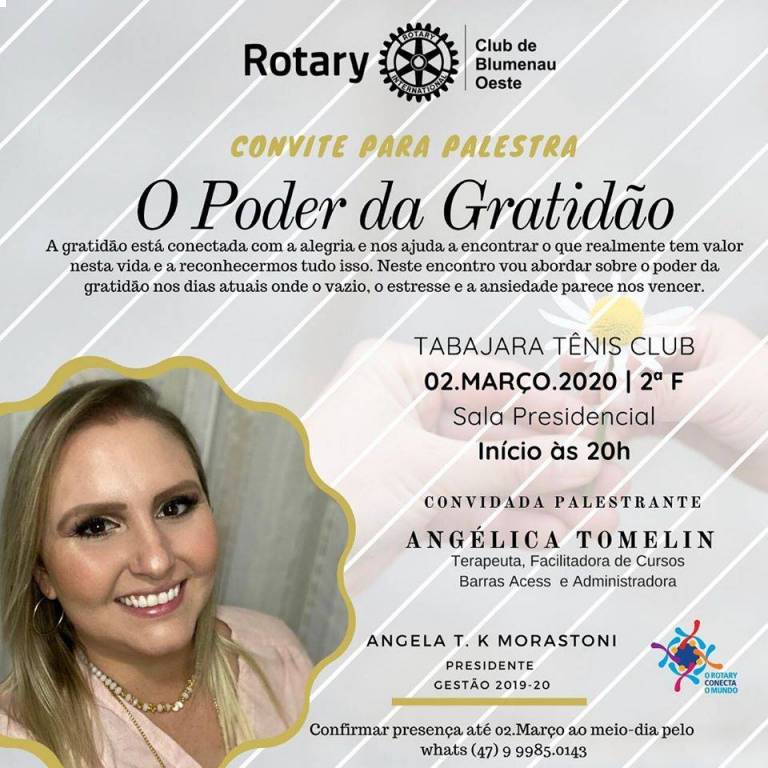 No dia 02 de Março, teremos uma palestra gratuita com o tema: “O Poder da Gratidão” com a convidada Angélica Tomelin @angelicatomelin !
