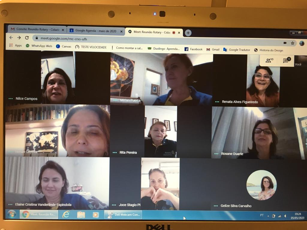 O Rotary Clube de Joinville Cidade das Flores reuniu 16 companheiras em reunião on line para tratar de assuntos pertinentes ao COVID19 e demais ações envolvendo o cenário mundial. A Presidente Veralucia R. Ferreira Oliveira deu inicio a reunião com breve apresentação e em seguida passou a palavra para protocolo Rita.