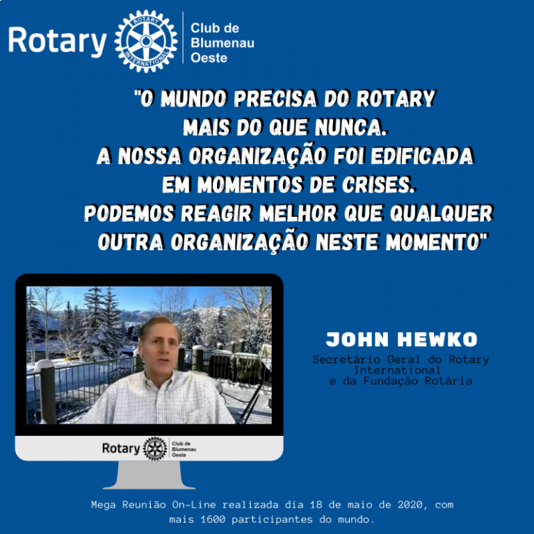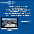 A mensagem principal de John Hewko, Secretário Geral do Rotary International e da Fundação Rotária "O Mundo precisa do Rotary mais do nunca. A nossa organização foi edificada em momentos de crise. Podemos reagir melhor que qualquer organização neste momento de crise"